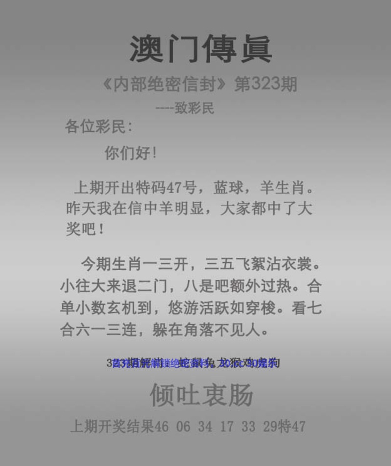 | 322期:七肖 | 猪牛猴鼠羊鸡蛇 | 羊47中 |